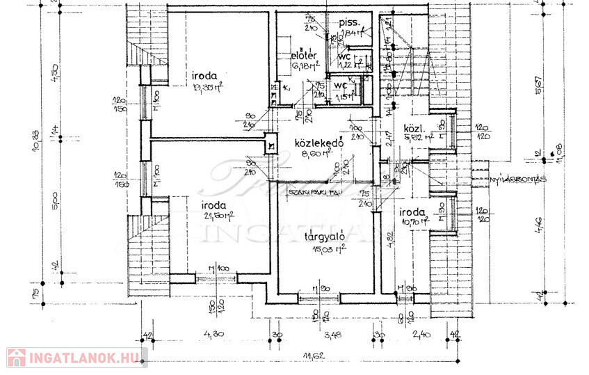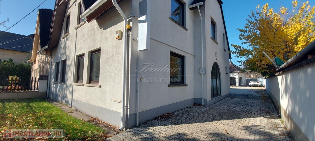 Az ingatlan jelenleg irodaházként működik, de nagyobb család részére is kitűnő életteret nyújt. A telek nagy része térkővel burkolt, ahol 6 autó parkolására van lehetőség. A garázs egy raktárhoz/üzlethelyiséghez kapcsolódik, melynek tetőtere is beépített.