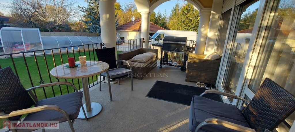 A ház kamerás riasztórendszerrel és ipari árammal felszerelt. A kertben automata öntözőrendszer és fúrt kút gondoskodik a zöld környezet könnyű fenntartásáról. A nagy térköves bejáró egy 35 m²-es dupla garázshoz vezet, valamint a telken található egy 45 m²-es, közművesített zárt pavilon, amely akár vendégházként vagy külön lakrészként is használható.