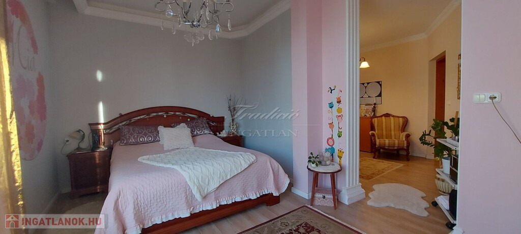 Győr-Kisbácsán nyugodt környezetben, 1331 m2-es intim-parkosított telken eladó egy 2000-ben kimagasló minőségben megépített, igényesen karbantartott, minden részletében átgondolt 175 m2 lakóterű, nappali és 3 szobás, étkező-konyhás klimatizált családi ház, amely kényelmet, biztonságot és luxust kínál egyben. Az épület alatti 145 m2-es pince kikapcsolódásra, sportolásra, hobbi célokra, rendezvények lebonyolítására kíválóan alkalmas.