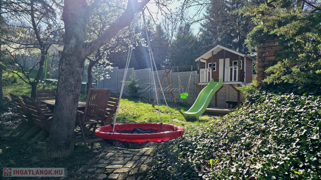 Győrújbarát csendes, abszolút forgalommentes zsákutcájában, enyhén lankás, kiváló panorámával rendelkező 2145 m2-es szépen gondozott, bekerített telken eladó ez a 2000-ben épült, pár éve átépített és felújított nappali + 3 szobás kétszintes családi ház.