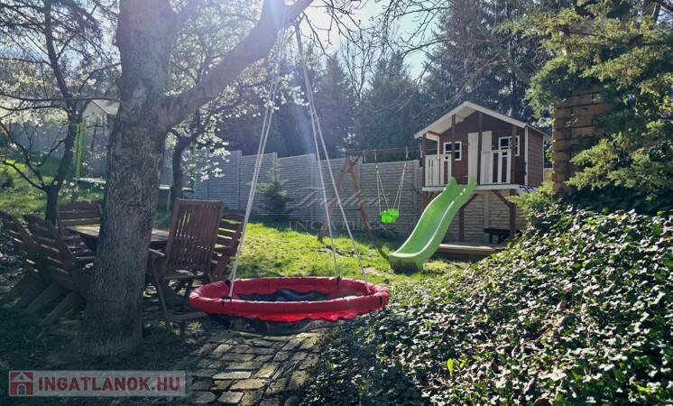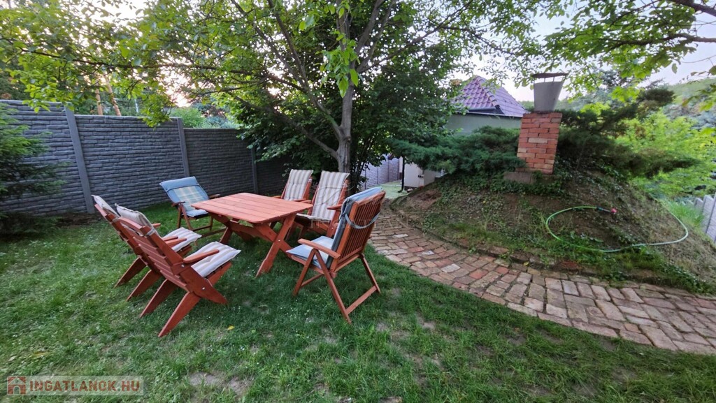 A körbekerített, borospincével is rendelkező 2145 m2-es parkosított telek egy erdőben végződik, így az ingatlan igazán természetközelinek mondható. A telek lakó falusias övezetű, ami 30 % beépítési lehetőséggel bír.
