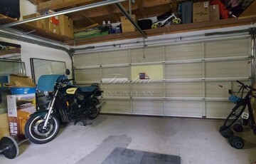 A 32 m²-es garázs szekcionált kapuval és magas belmagassággal rendelkezik, ezáltal tárolásra is jól használható. A garázson kívül két térkövezett parkoló és egy fedett gépkocsibeálló ill. járda is készült.