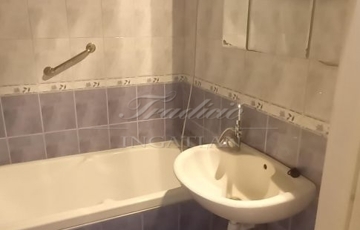 A távfűtéses ingatlan, jó minőségű konyhabútorral van szerelve, amelyben még a mosógép is helyet kapott.